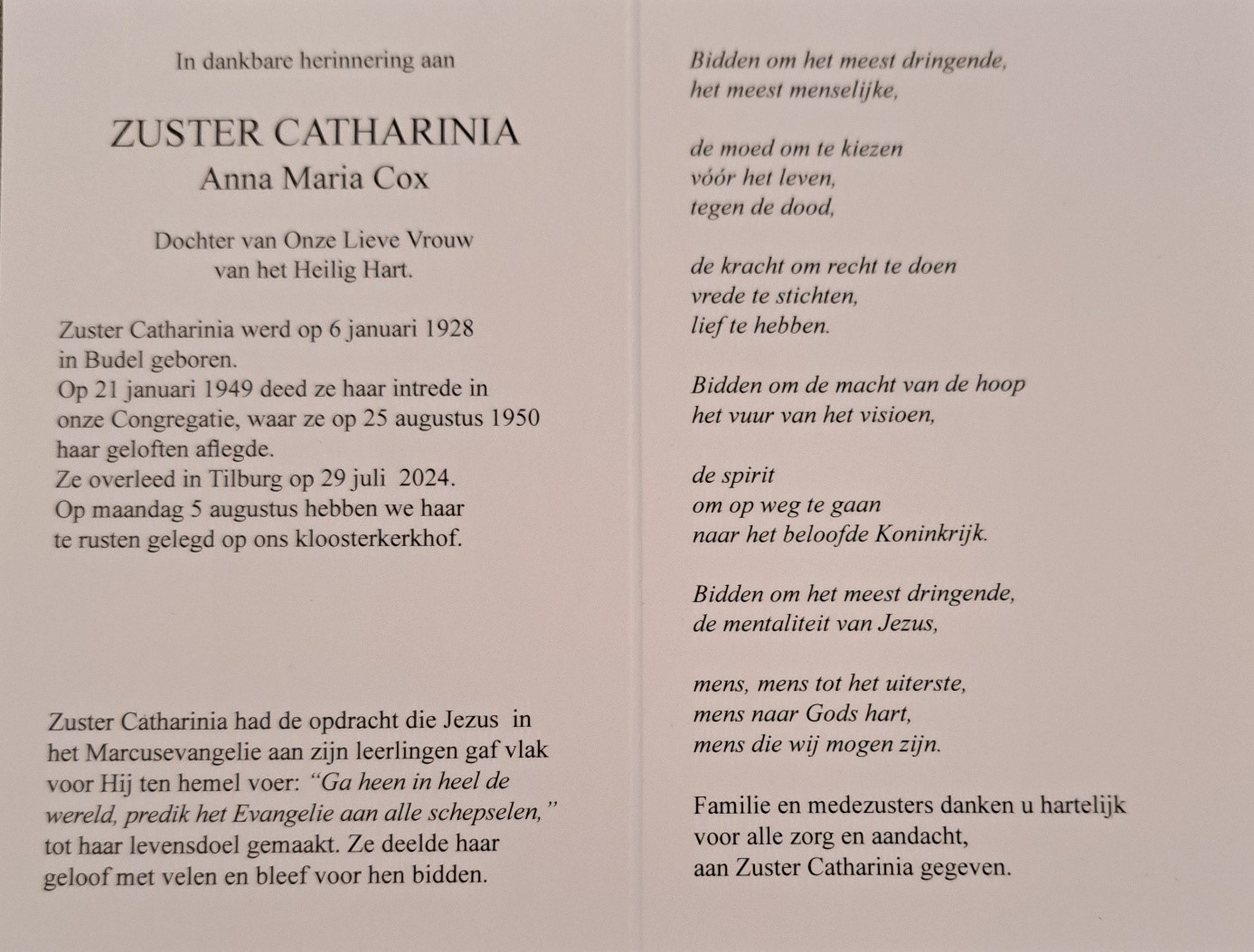 Anna Maria | Cox | 06-01-1928 | Budel | 29-07-2024 | Tilburg |