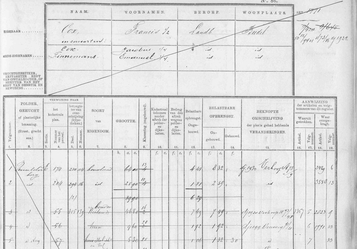 Na het overlijden van Catharina Vos in 1930 wordt Jacobus Cox voor 5⁄8 deel eigenaar en de 3 kinderen ieder voor 1⁄8 deel.
