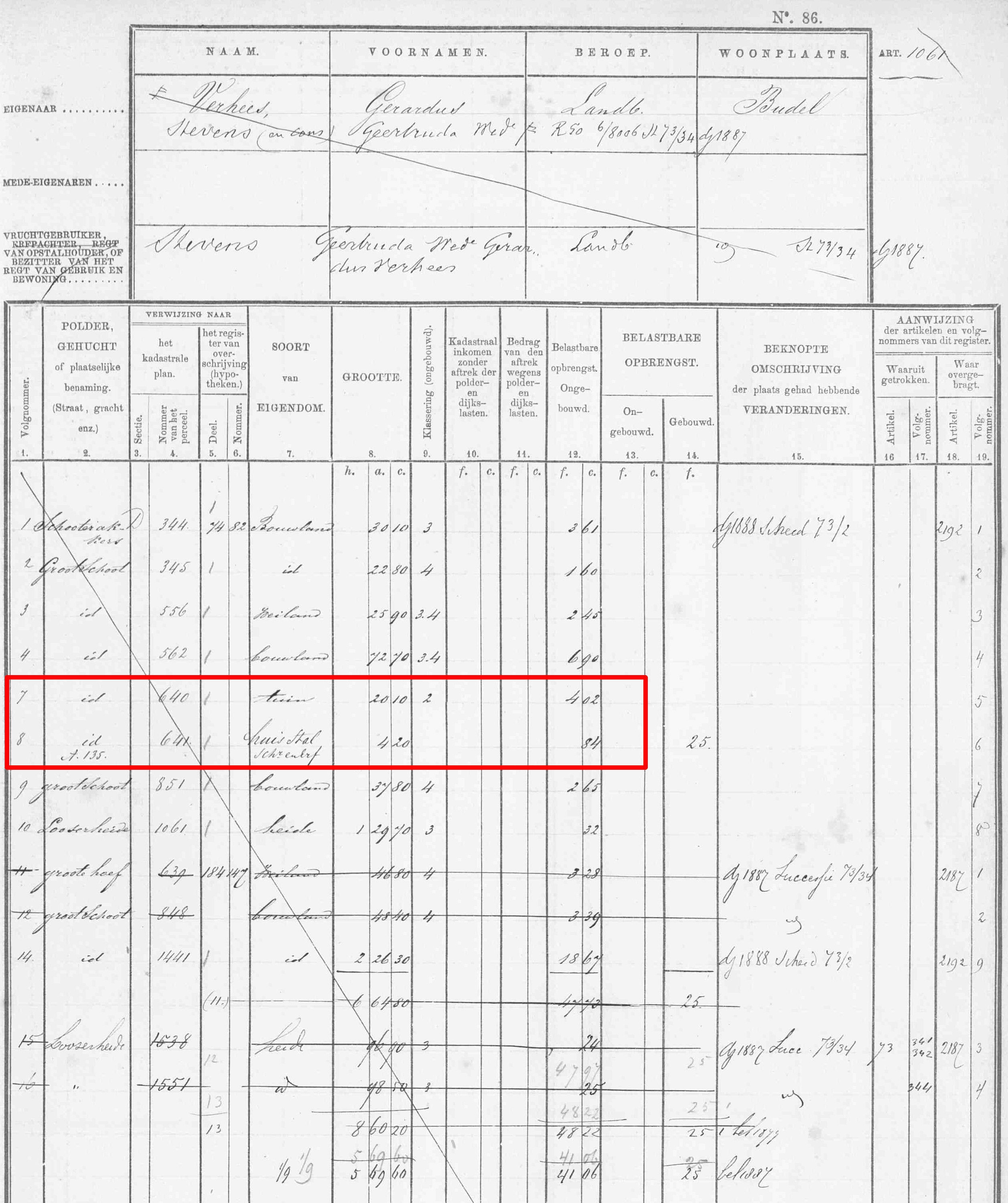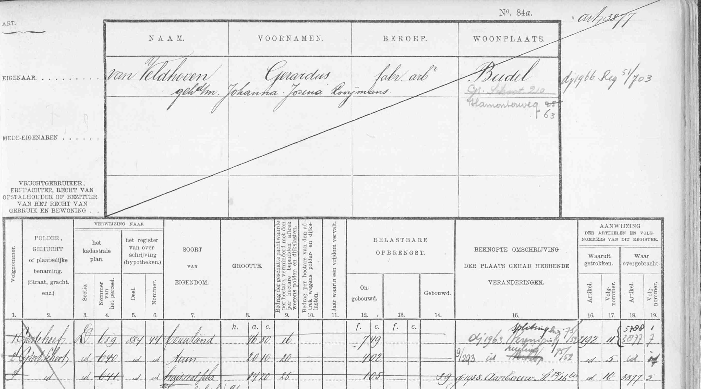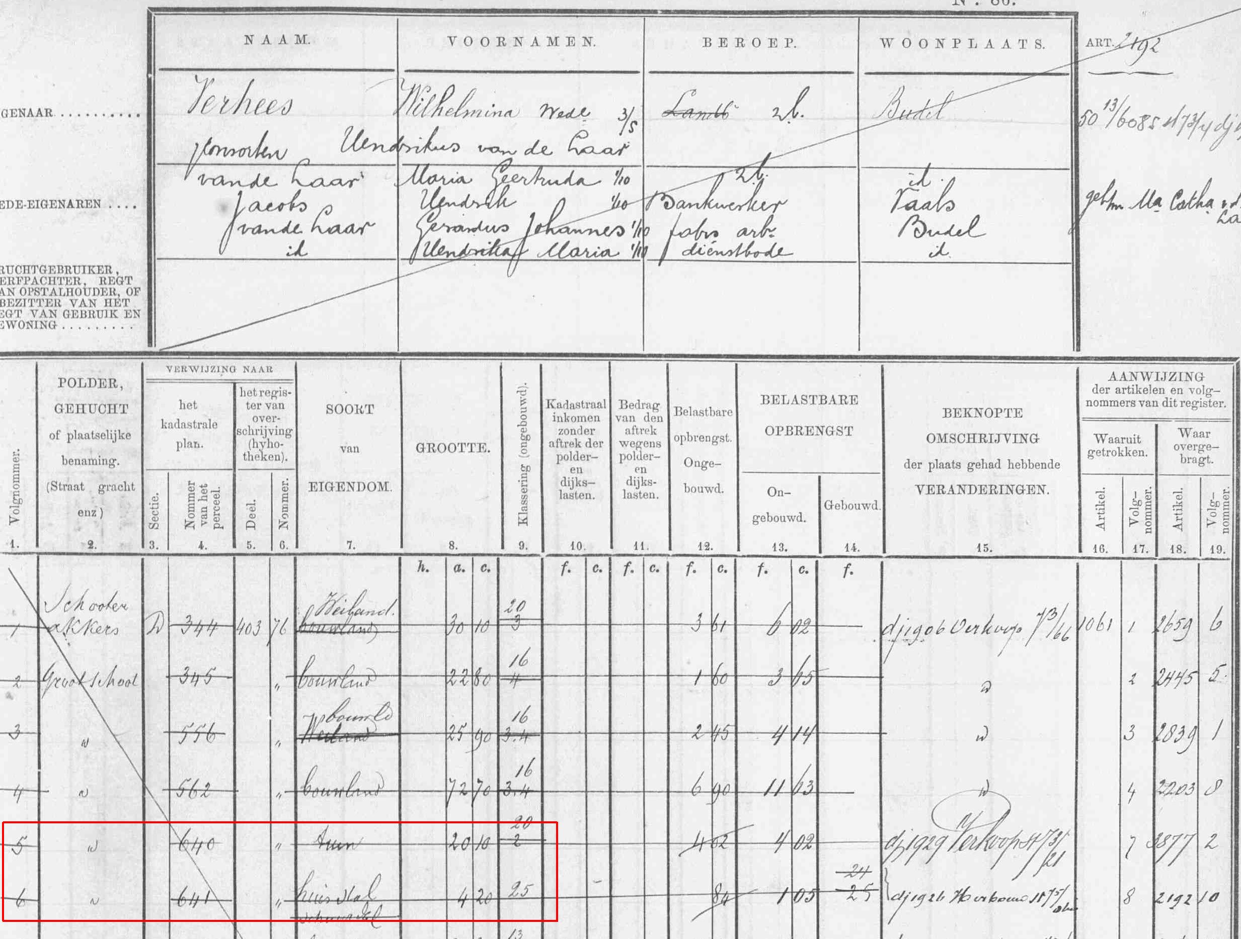1848 eigenaar Gerardus Verhees geboren 09-08-1823 te Hamont, overleden 27-05-1885 te Budel, gehuwd 10-07-1848 te Hamont met Hendrika Meeuwissen geboren 04-07-1819 te Hamont en overleden 10-02-1857 te Budel.