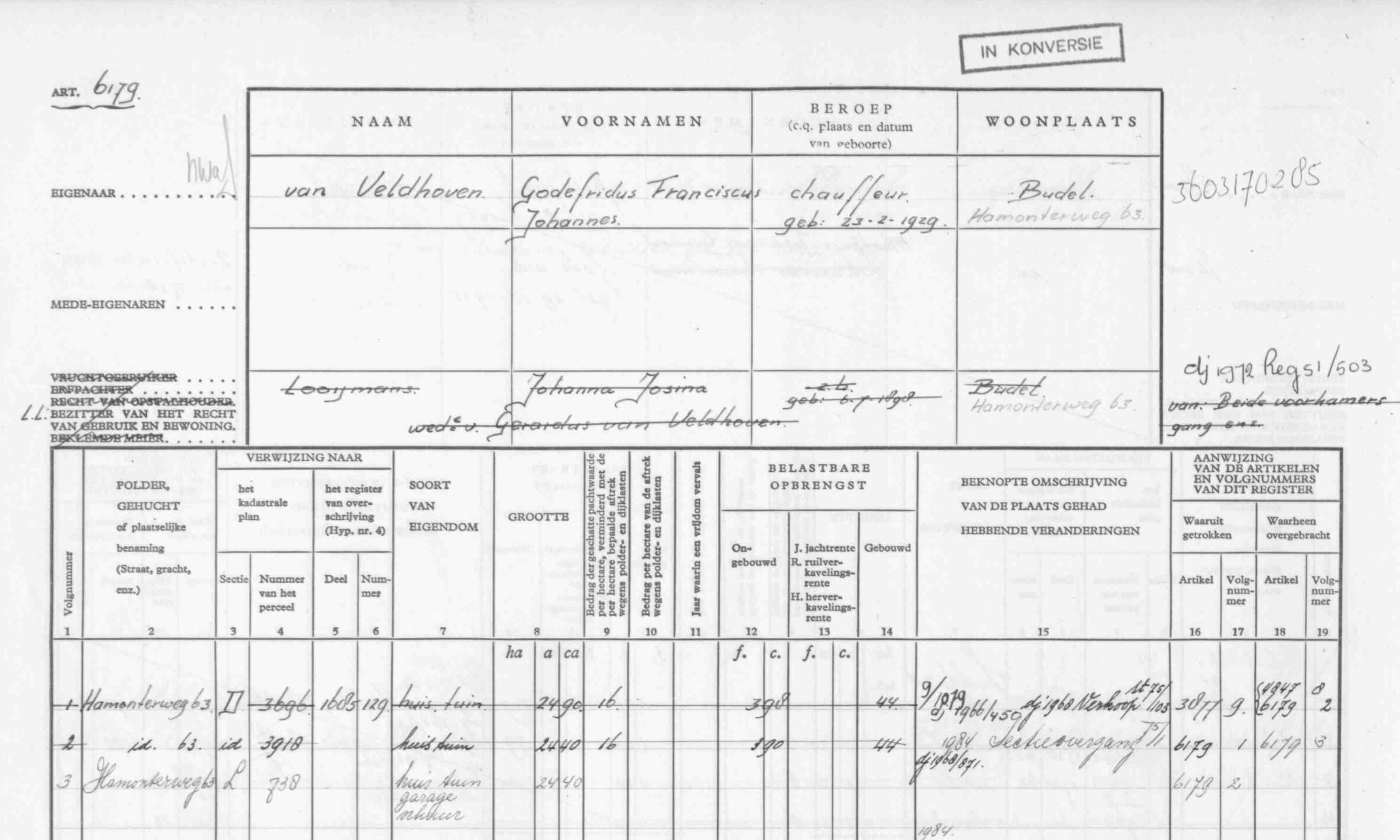 In 1966 wordt hun zoon Godefridus (Fried) van Veldhoven eigenaar, zoals de P.K.L. laat zien woont zijn moeder bij het gezin.
