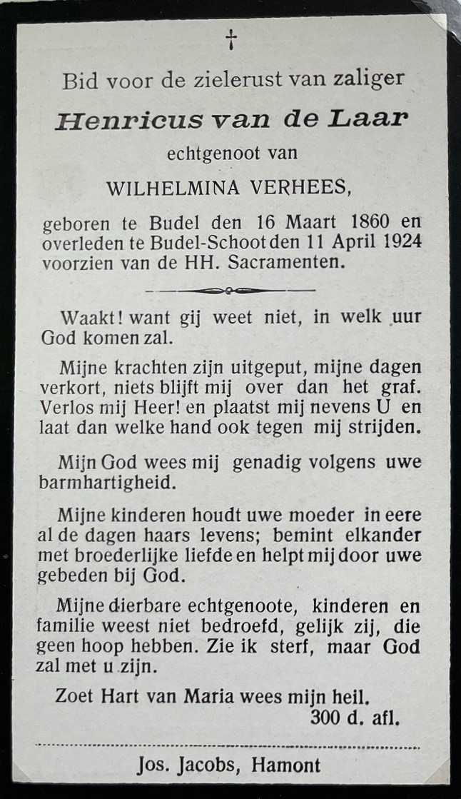 | Hendrikus | van de Laar | 15-03-1860 | Budel | schoonzoon | |||
