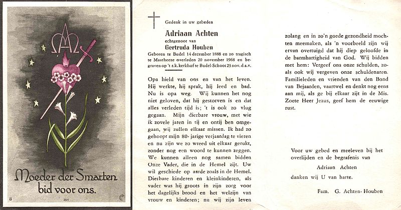 Bidprentje Adriaan Achten en Gertruda Hoe(u)ben