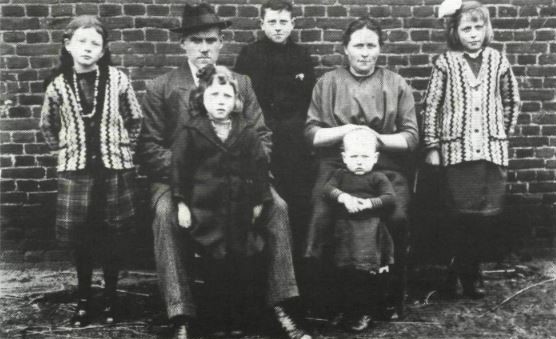 Achterste rij Nel, vader Janus, Harry, moeder Trui, Miet.