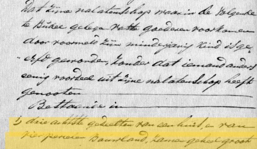 Uitsnede Memorie van Successie van Nicolaas Booms, waaruit blijkt dat Anna Maria Elisabeth Booms hier 3⁄8 deel van de eigendommen erft.