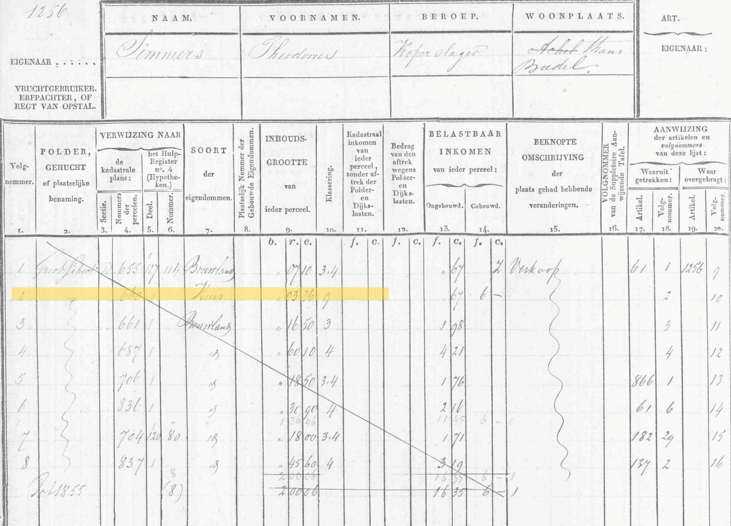 1854 Theodorus Simmers eigenaar en bewoner.