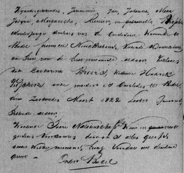 1⁄6 deel Joannes Lambertus Guns weduwnaar van Catharina Vissers.