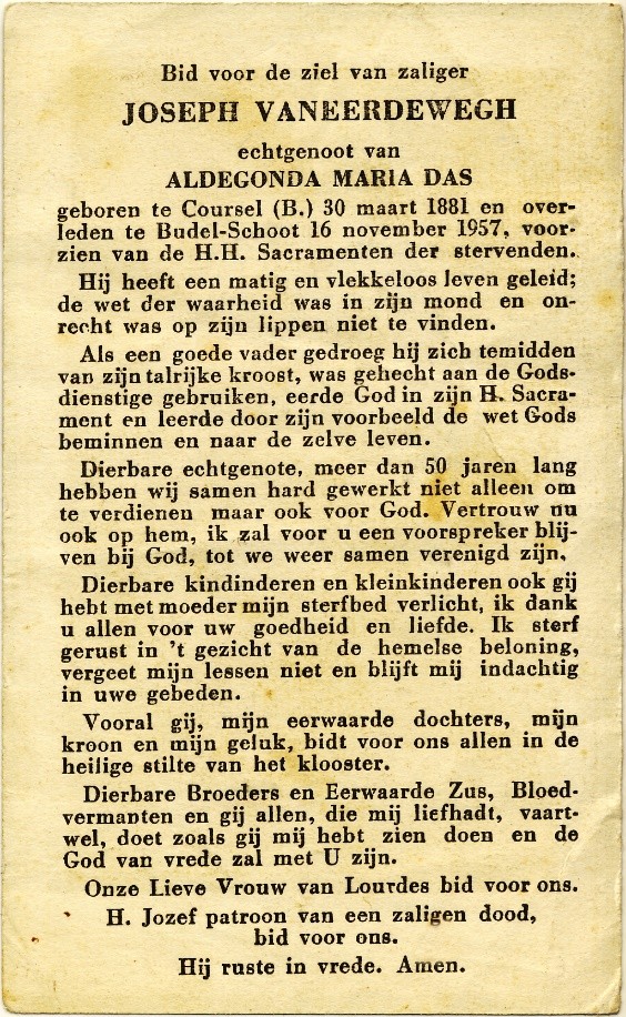 Joseph | Vaneerdewegh | 30-03-1881 | Koersel | 16-11-1957 | Budel |