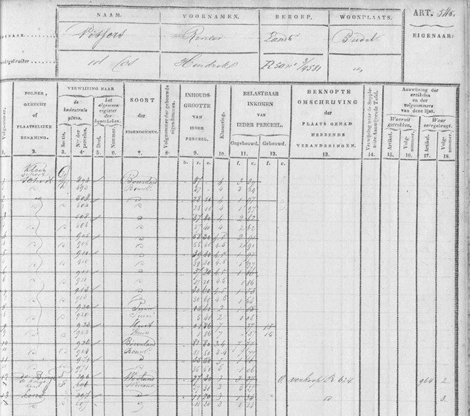 Kadaster gegevens 1832