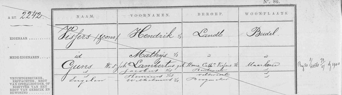 Kadastrale legger Hendrik Vissers en mede eigenaren.