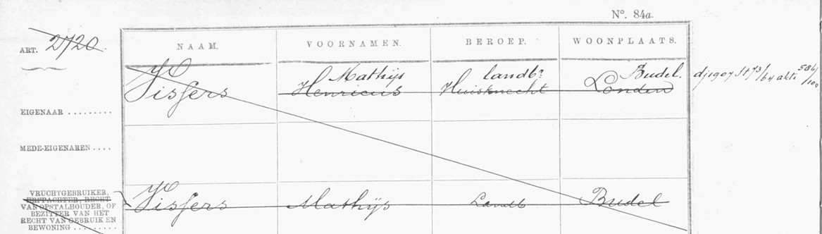 De nieuwe wijze van kadastrale registratie (PKL persoonlijke kadastrale legger). Voor Renier Vissers werd artikel 585, met o.a. de boerderij