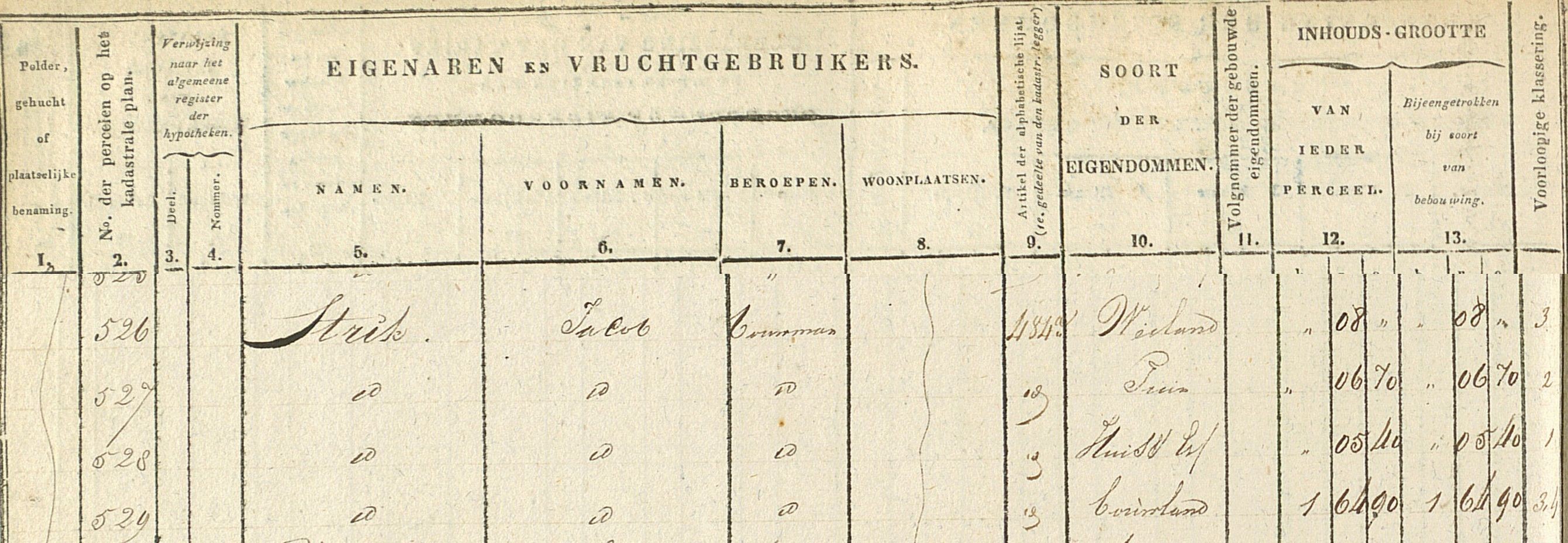 Volgens het bodemboek is de eigenaar in 1811 Hendrik Strik, de vader van Jacobus Strick .