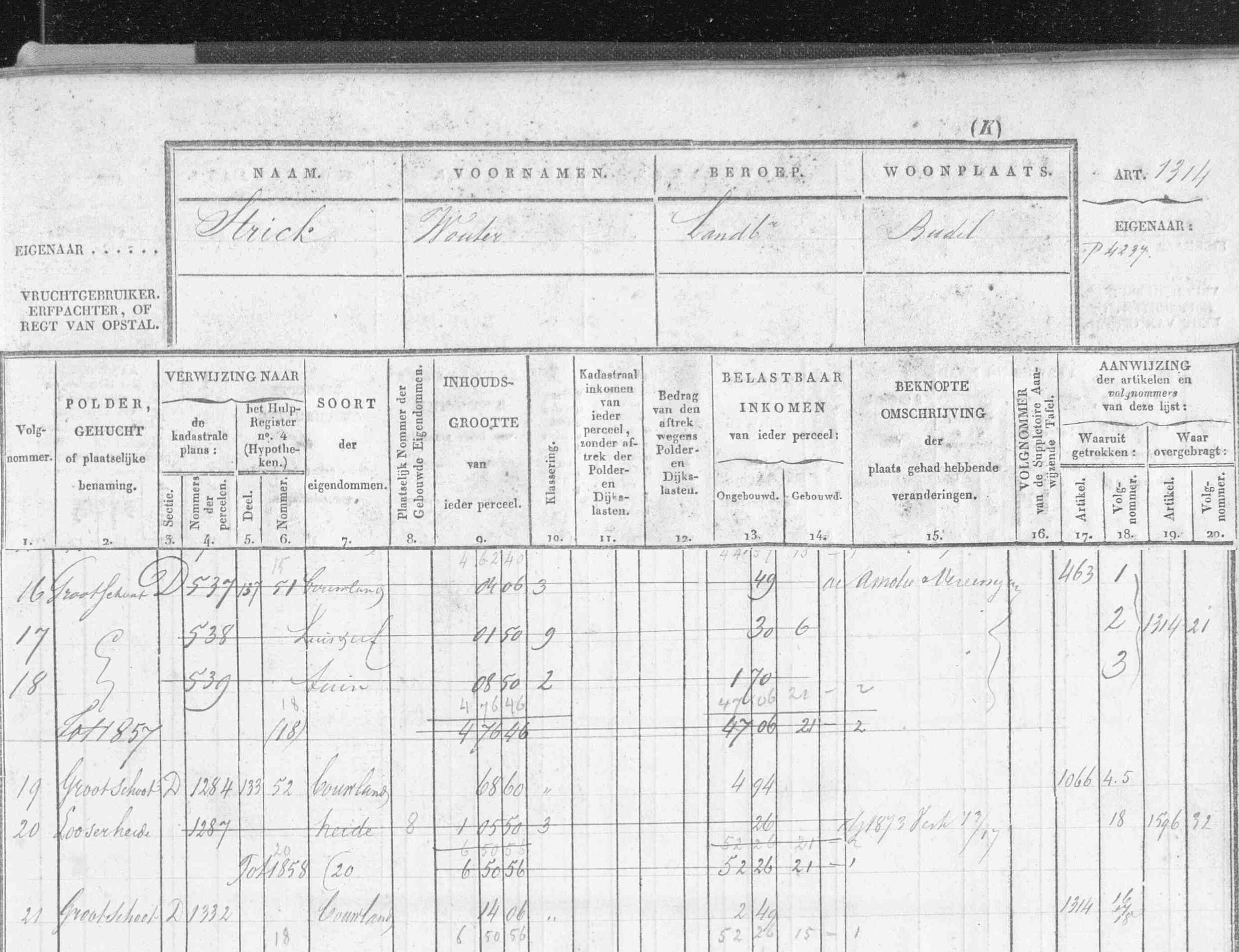 In 1857 wordt Wouter Strick eigenaar, zie voormalig huis D-0528 Poelderstraat.