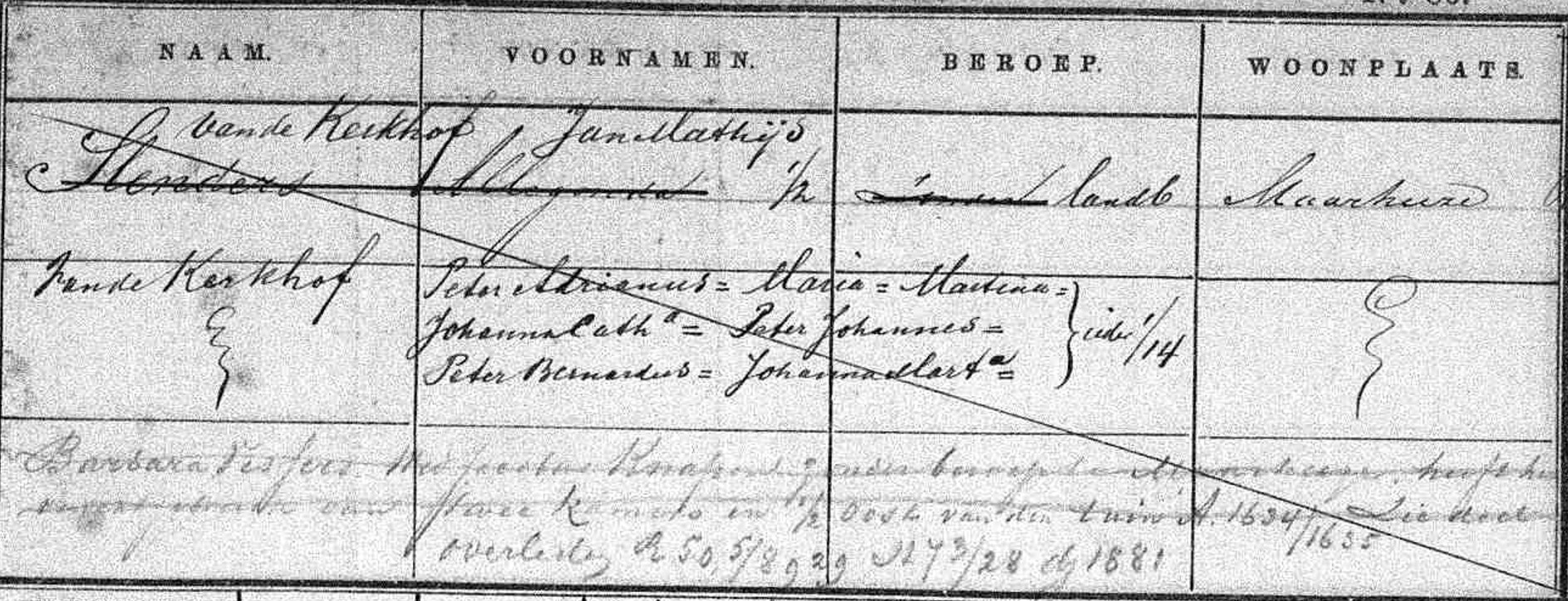 Peter Johannes | vd Kerkhof | 09-07-1881 | Maarheeze | vóór 1882 | Maarheeze |