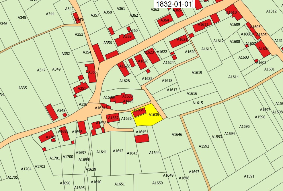 1832 Perceel A-1634 en A-1635 kadaster digitaal