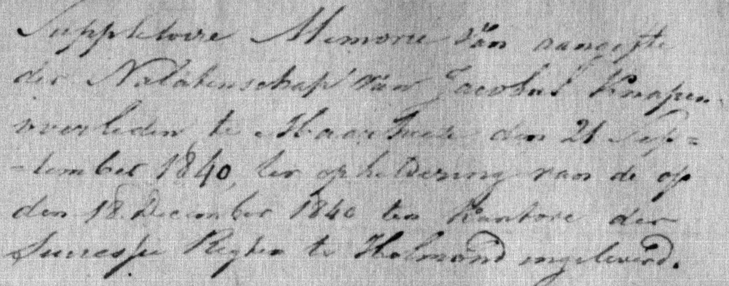 Na het overlijden van Antonie in 1840 wordt er een memorie van successie opgemaakt.