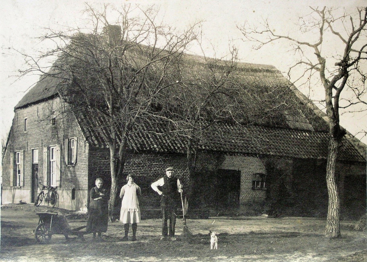 1926 De boerderij met huurders Engelen. Links moeder Anna Maria, rechts vader Petrus Johannes met een van de dochters in het midden.