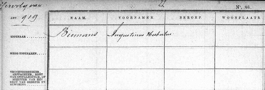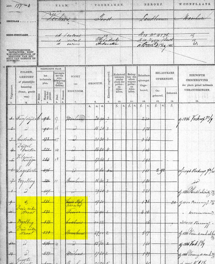 Ook de PKL (Persoonlijk Kadastrale Legger) laat zien dat Joost niet alléén eigenaar was, broer Hendrik en een zus Antonetta waren mede-eigenaar.