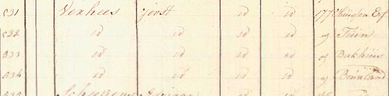 | A-531 | Joost Verhees | Huis | A-2493 | A-2493 | Huis met bouwland | A-2529 |