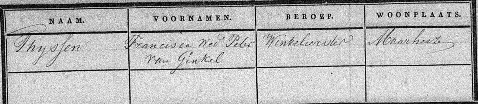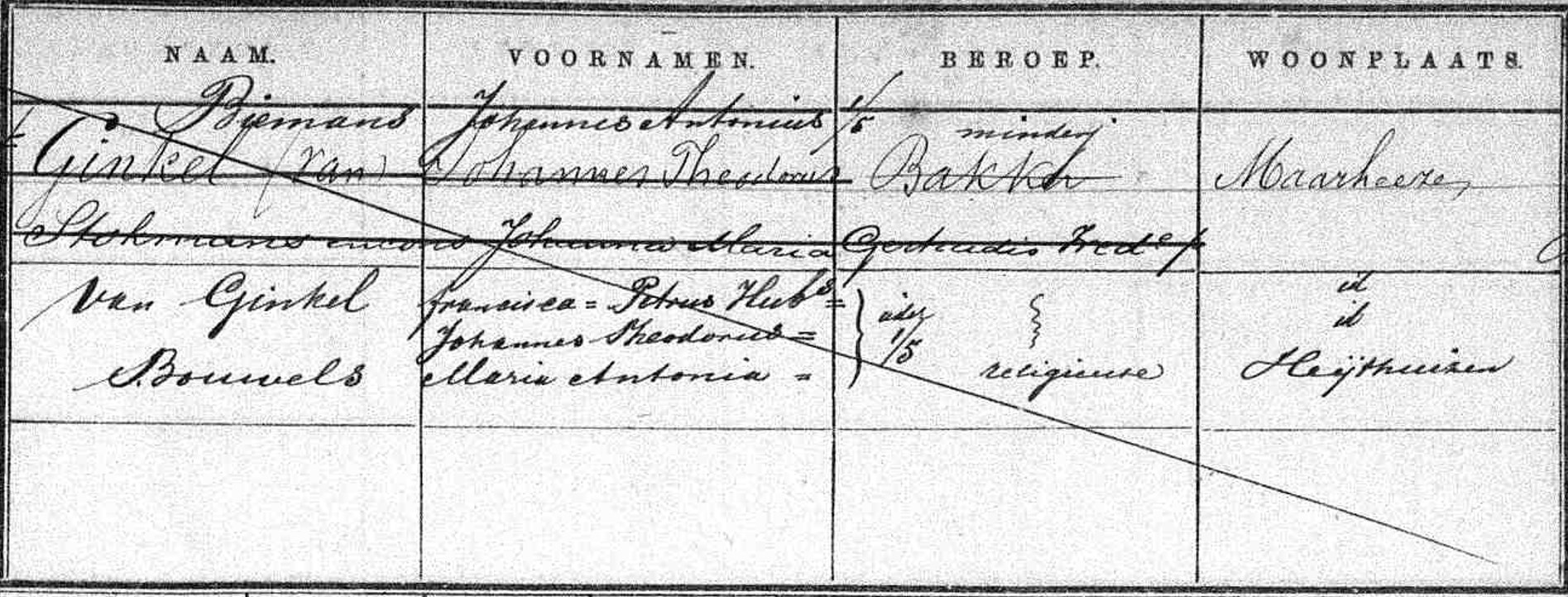 Petronella F. | van Ginkel | 22-11-1853 | Bladel | 31-08-1875 | Maarheeze |