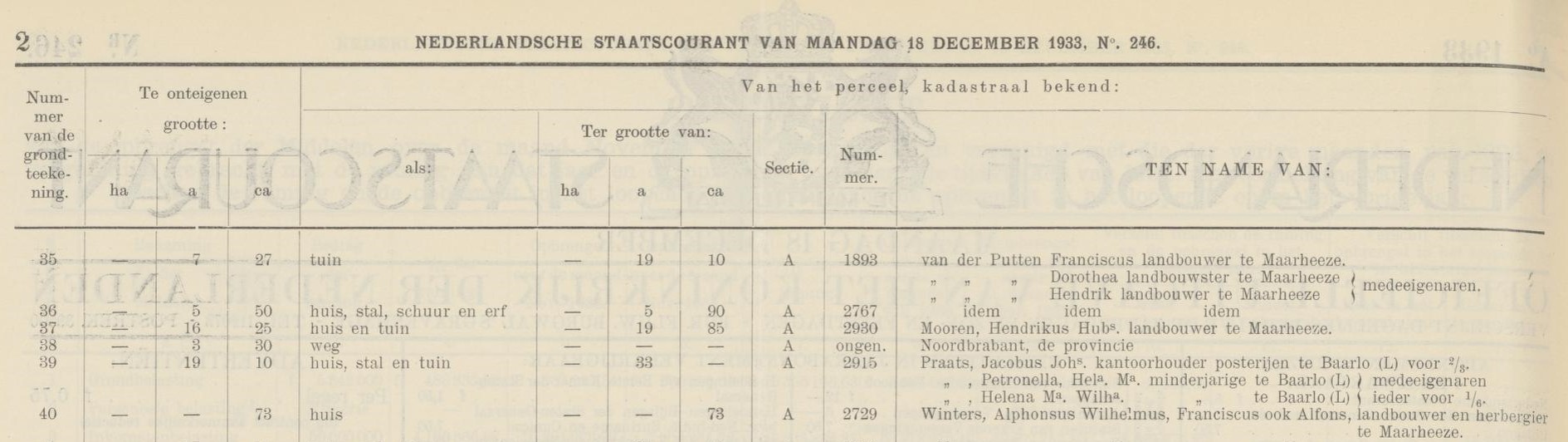 In 1935 wordt de Rijksweg Weert-Eindhoven aangelegd, die door Maarheeze loopt. (Nu A2) Voor de aanleg moesten diverse panden wijken die daarvoor onteigend worden waaronder: