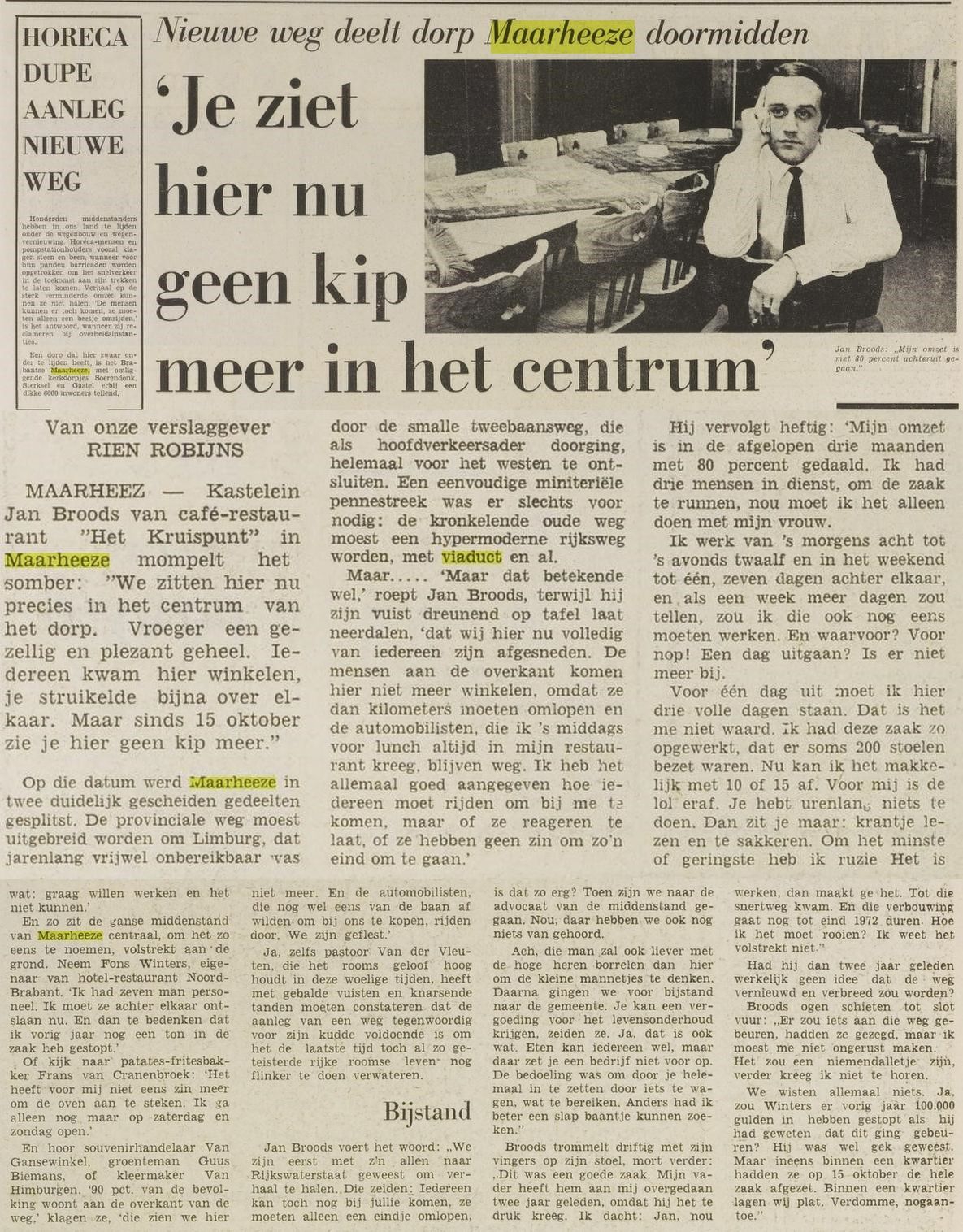 Een interview met toenmalig eigenaar en uitbater Jan Broods van café-restaurant 't Kruispunt, kwam uitgebreid in de krant: