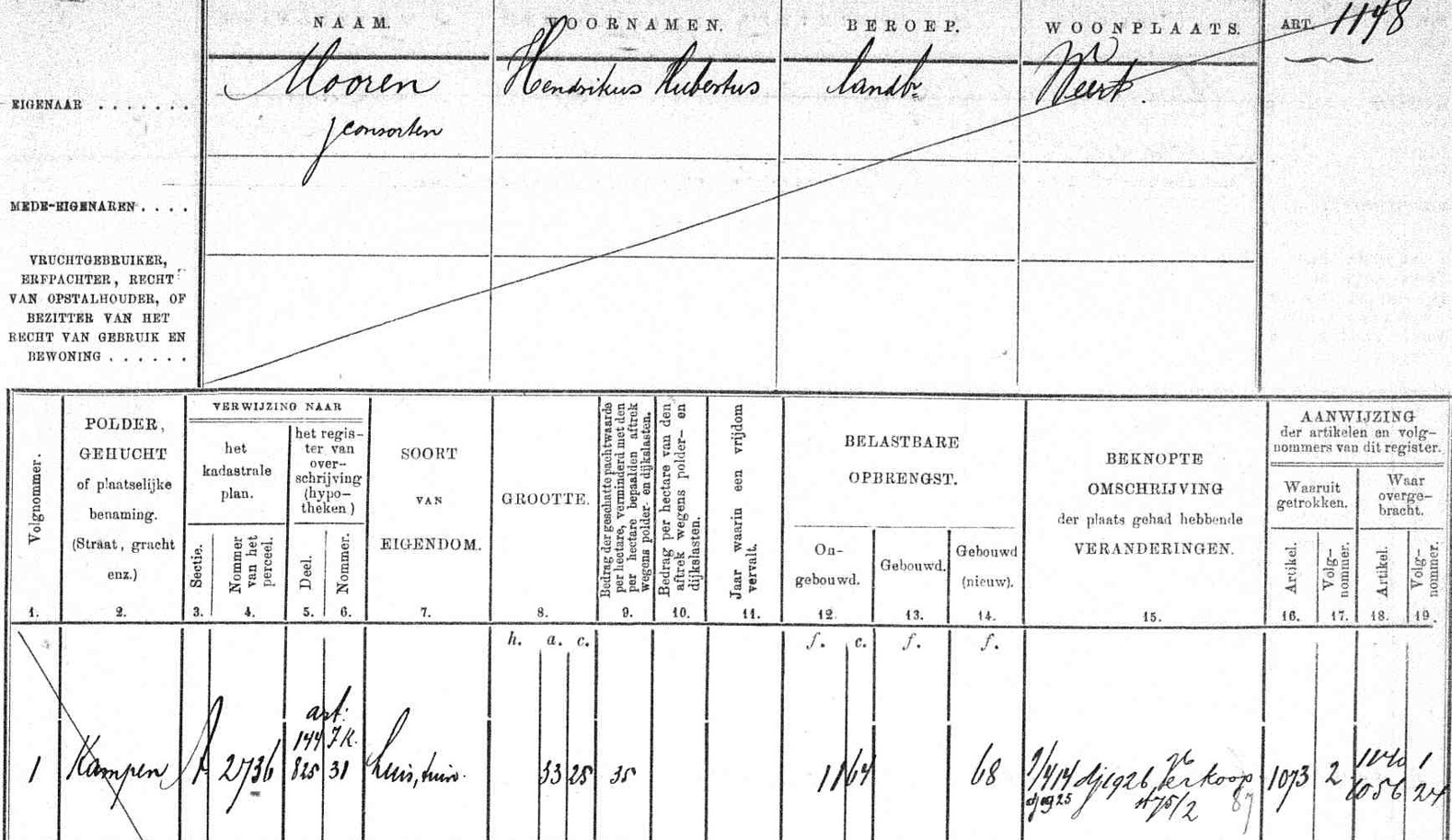 In 1903 werd het huis en de bijbehorende grond nog tot een perceel omgenummerd