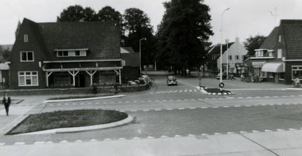 Hierboven, de nieuw aangelegde Rijksweg kijkend naar de Kerkstraat. Aan weerszijde van de Kerkstraat twee panden Winters. Links op de foto café-restaurant Noord-Brabant, dan van Fons Winters en rechts café-restaurant 't Kruispunt, dan van Everardus Winters, met het woonhuis Mooren eraan vast gebouwd.