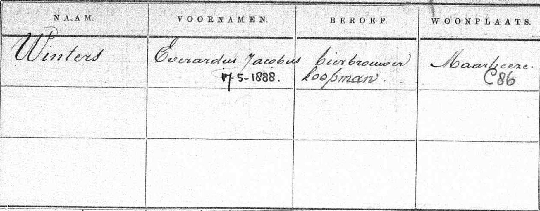 Moeder Francisca staat in de bevolkingsregisters ingeschreven als winkelierster, terwijl oudste zoon Johannes Theodorus met als beroep (brood) bakker staat ingeschreven.