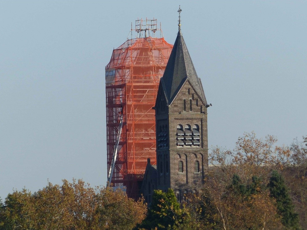 In 2020 staat een van de kerktorens in de steigers. Er vindt een grondige restauratie plaats.