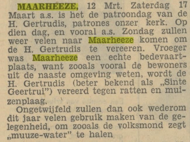 Vanaf dat moment werd Maarheeze een klein bedevaartsoord rond ST. Gertrudis, met jaarlijkse bijeenkomsten op 17 maart.