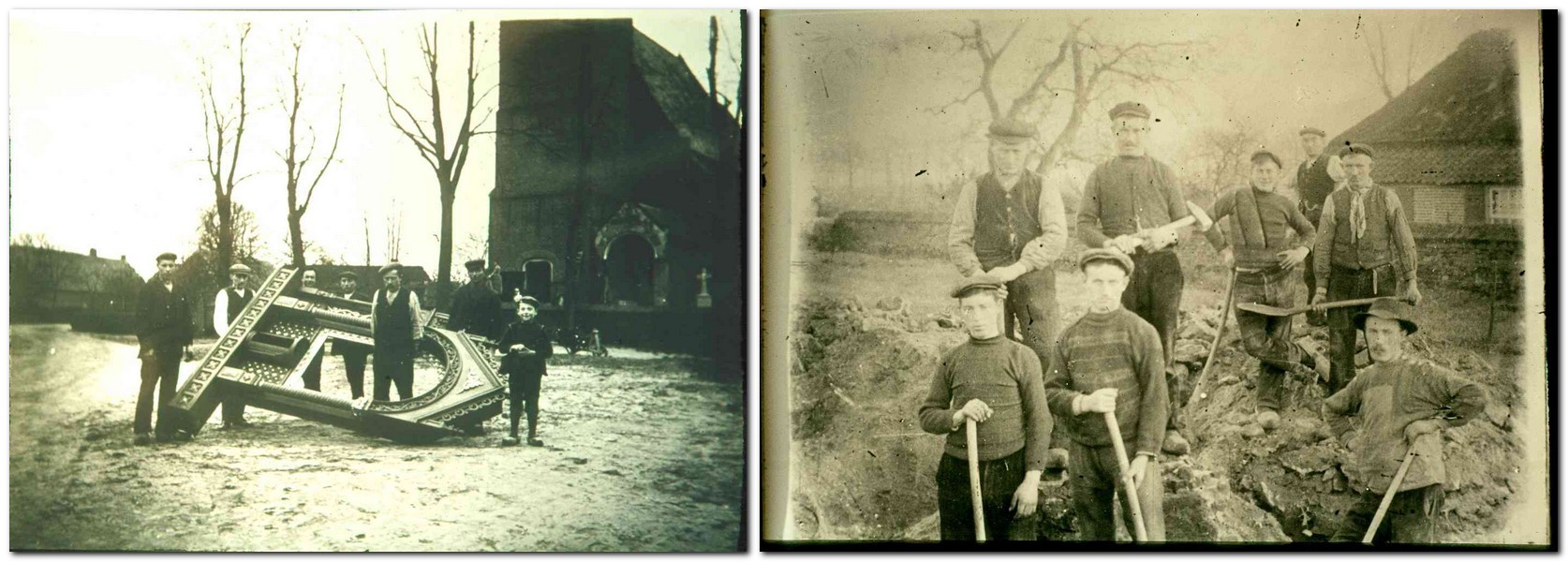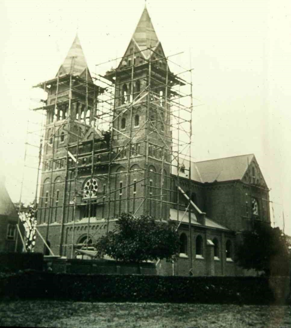 Met veel hand- en spandiensten van de parochianen werd vanaf september 1909 gewerkt aan deze nieuwe kerk onder leiding van broers Lambertus en Gerardus de Vries, respectievelijk architect en aannemer.