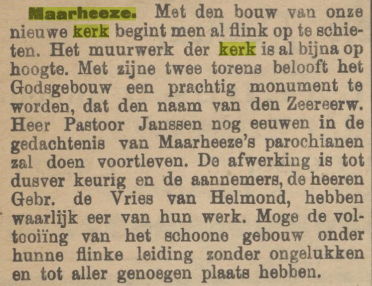 Hij werd opgevolgd door de pastoor Henricus Adrianus Maria Janssen (1861-1927) pastoor van Maarheeze 1907 tot 1927, die een prominente rol speelde bij de bouw van de nieuwe huidige kerk.