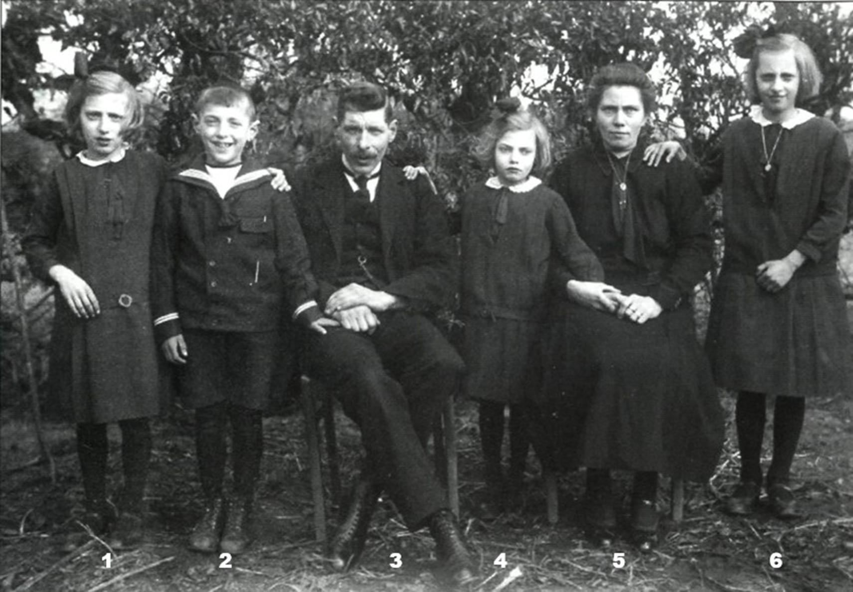 Foto rond 1930, het gezin Guns-Schenkels met de kinderen: