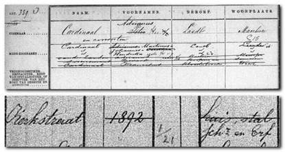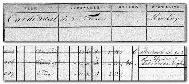 Het bevolkingsregister 1825 laat het gezin Cardinaal met vijf kinderen zien. Vader Franciscus overleed in 1828, en Maria van der Sanden wordt in het kadaster ingeschreven als weduwe Cardinaal.