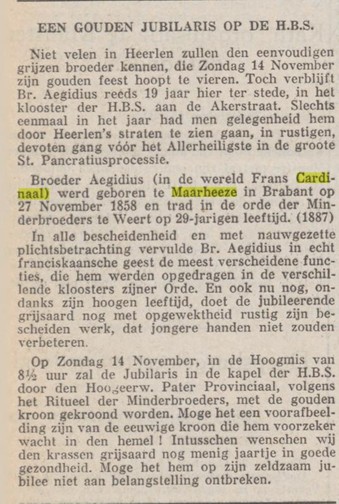 Adrianus | Cardinaal | 25-11-1861 | Maarheeze | 06-04-1953 | Maarheeze |