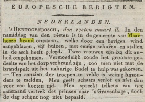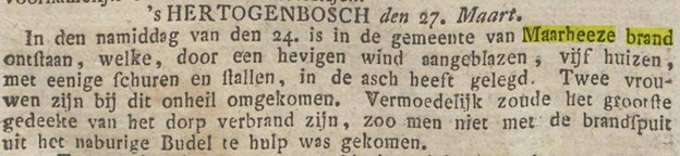 Mogelijk net vόόr, of zelfs tijdens de kadastrale inschrijvingen breekt er brand uit in een pakhuis bij de boerderij Cardinaal.