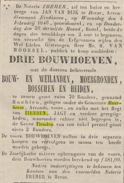 Dat het gebruik van het genoemde tienden recht tot midden 19e eeuw nog volop levendig was wordt nog eens duidelijk middels een krantenadvertentie uit 1846: