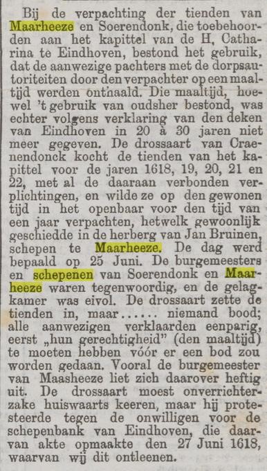 Als laatste, ter "leering ende vermaek" een krantenartikel uit 1892 waarin het tienden recht nog eens duidelijk naar voren komt, samen met het feit dat de lokale herbergen nogal eens werden gebruikt voor het bespreken en behandelen van belangrijke zaken.