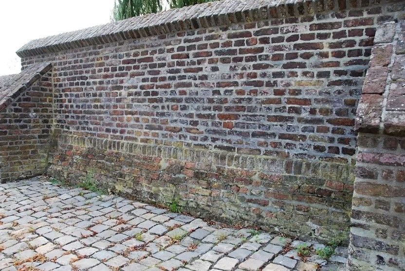 Na de sloop van de oude kerk rond 1911, bleef de muur behouden en het hele terrein werd omgevormd tot kerkhof. De muur werd uiteindelijk een gemeentelijk monument ten behoeve van het dorpsgezicht. Vanaf 2005 raakte de muur ernstig aangetast, scheuren, verzakkingen, loszittende stenen en overwoekering door klimop. Restauraties zijn deels uitgevoerd, maar sommige delen blijven verzwakt. |