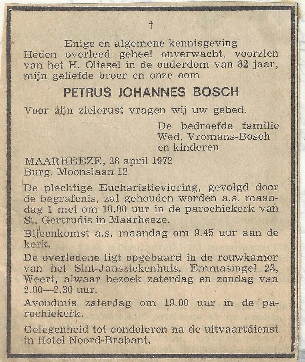 Peter Johannes | Bosch | 03-01-1890 | Maarheeze | 28-04-1972 | Maarheeze |