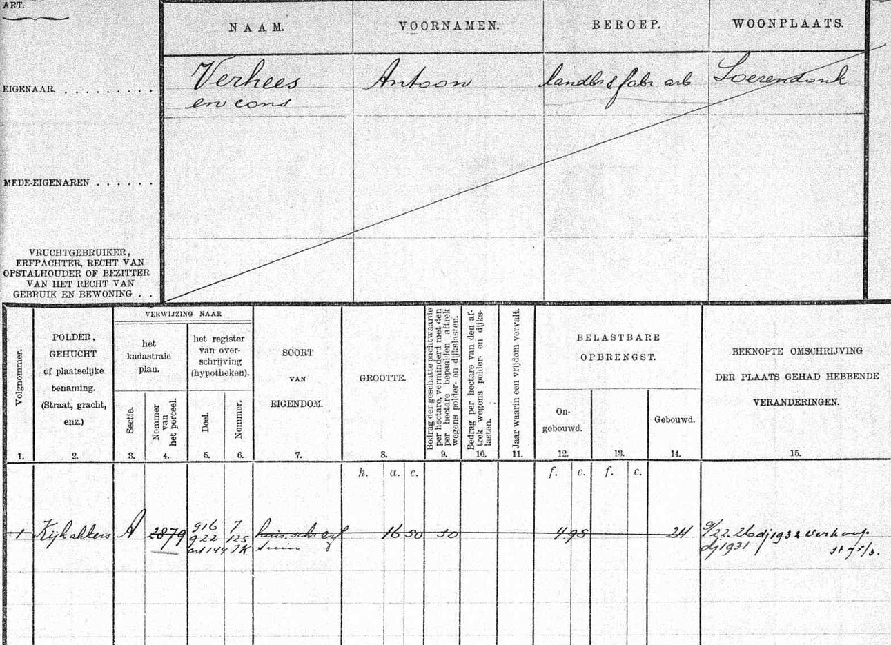 In 1921, na de familie Peerlings, wordt de nieuwe eigenaar Antonie Verhees.
