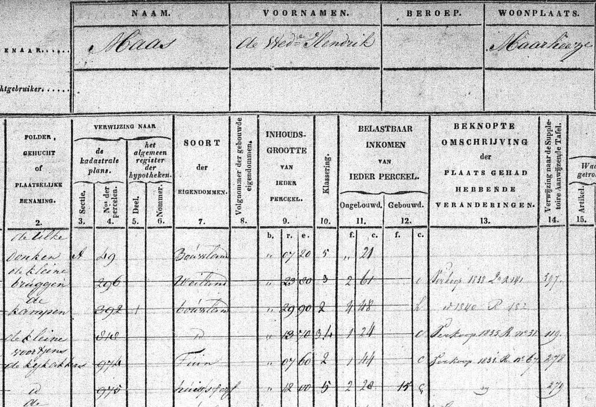 A-975 | Weduwe Hendrik Maas | Huis en erf | A-2633 | A-2862 | A-2879 | A-2972 |