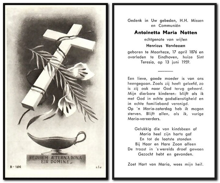 Antonetta | Notten | 17-04-1876 | Maarheeze | 13-06-1959 | Eindhoven |