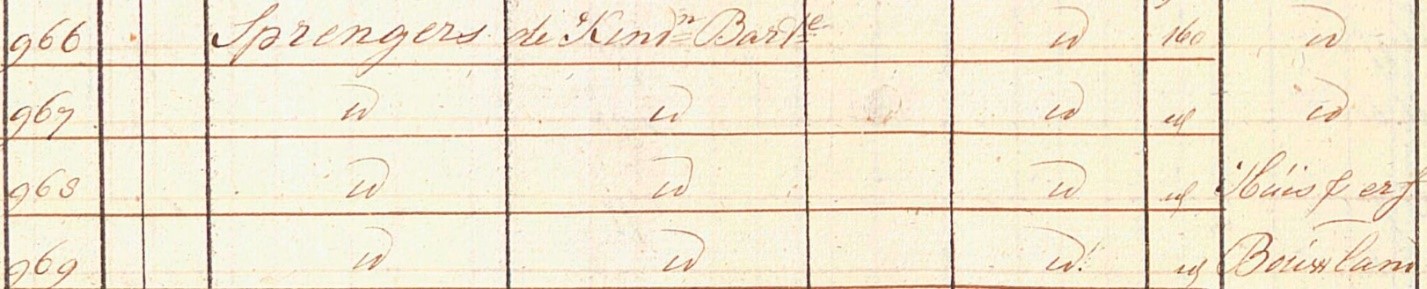 Na het overlijden van Bartholomeus Sprengers en Anna Maria Dillen, wordt de boerderij gedeeld eigendom van de kinderen.
