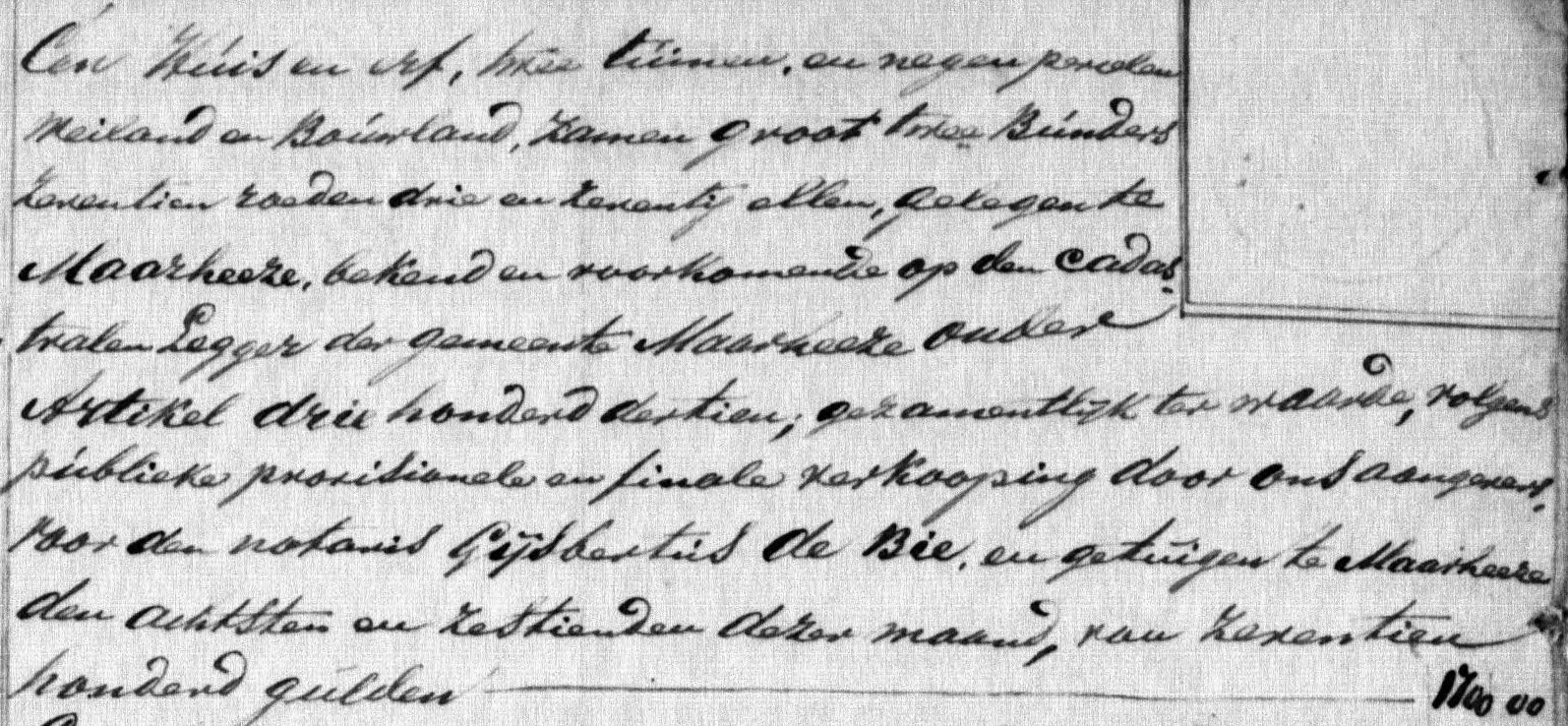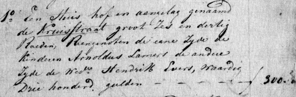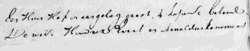 De memorie van successie laat het "huis, hof en aangelag" zien als groot 4 lopense.