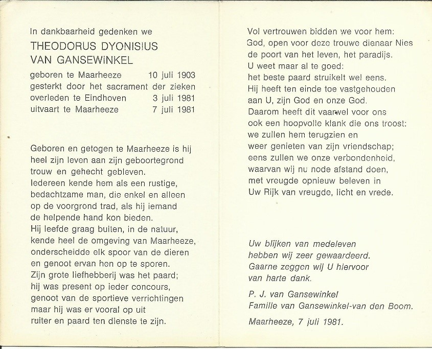 Theodorus Dyonisius | v Gansewinkel | 10-07-1903 | Maarheeze | 03-07-1981 | Maarheeze |