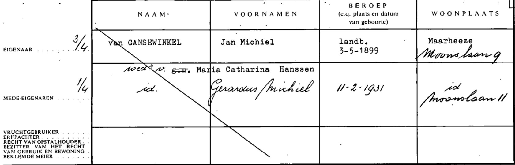 Hierna wordt het pand eigendom van Gerardus van Gansewinkel voor ½ deel en zijn kinderen ieder 1⁄10 deel.