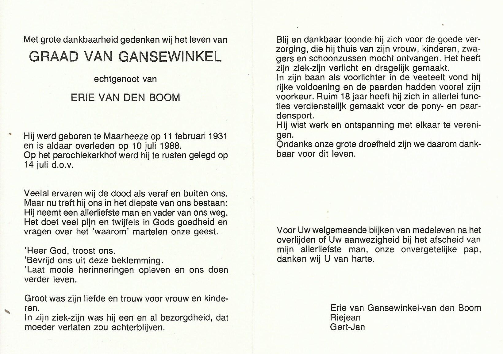 Uit dit echtpaar twee kinderen, waarvan zoon Gert-Jan later het tuincentrum Gradjeshof opzet.