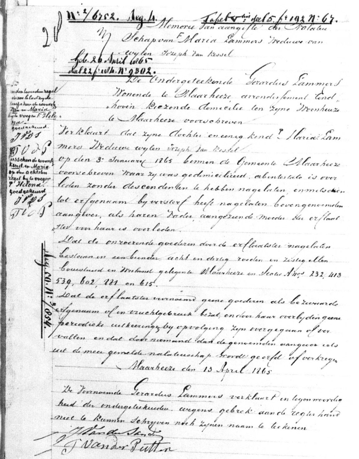 In 1846 overleed moeder Helena Flipsen. De memorie van successie wordt aangegeven door Gerardus Lamers, mede uit naam van zijn minderjarige dochter Maria Helena.
