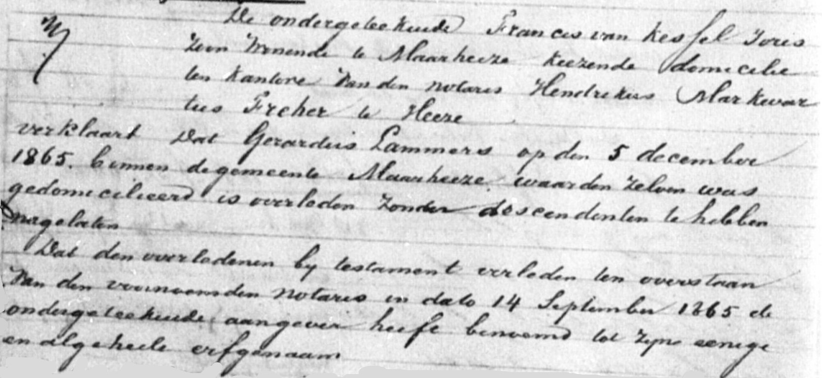 Datzelfde jaar, Maarheeze 5 december 1865, overleed ook Gerrit Lamers.